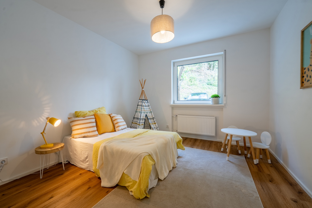 Die rund 117 m² große, vollständig sanierte Wohnung befindet sich in einem gepflegten Dreifamilienhaus in Friedrichssegen und überzeugt durch einen Balkon sowie einen eigenen Gartenanteil. Zur optimalen Präsentation wurde die Immobilie professionell mit Home Staging ausgestattet.